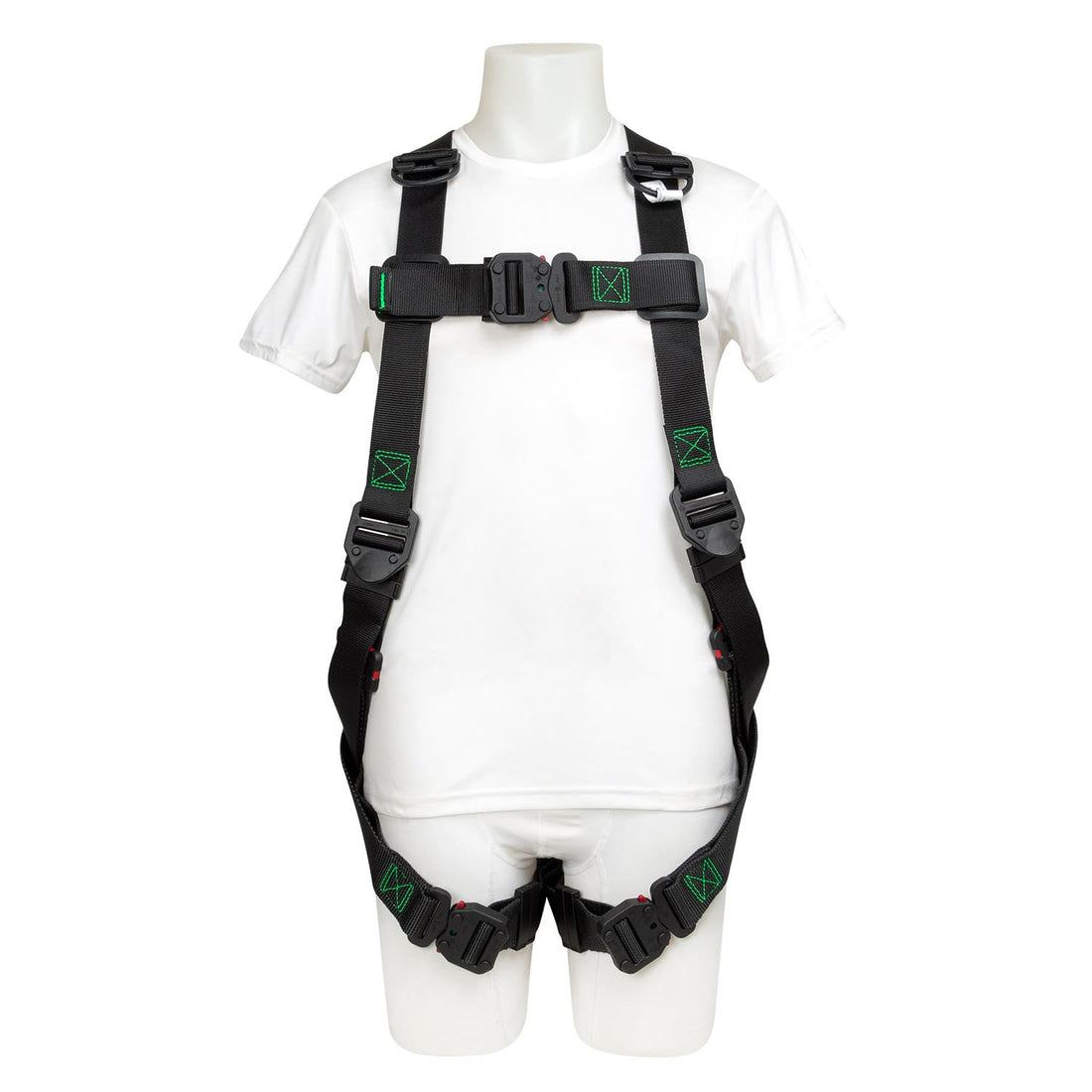 FEATURES: Features premium overmolded alloy steel dorsal D-ring, mating buckle leg, chest, and torso adjusters...
