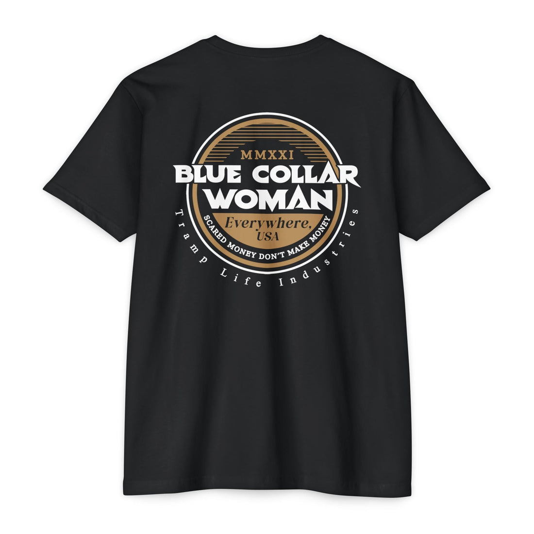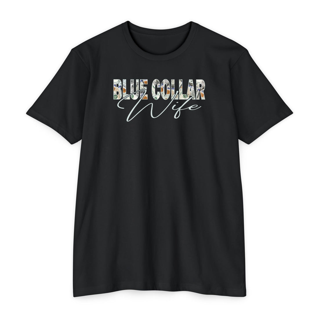 Blue Collar Wife – Money Crop TeeBuilt different — and married to it.This tee features a bold “Blue Collar” graphic filled with money print and a clean script Wife underneath. For the women who know that callused hands build real wealth and they’re riding right alongside it. Proud of the work. Proud of the man. Proud...