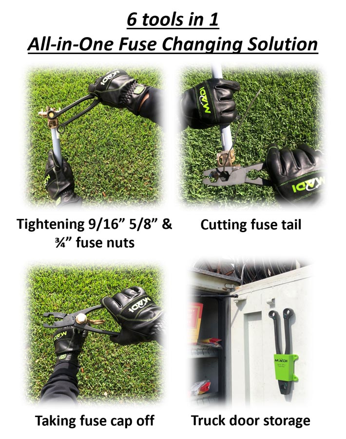 - Integrated:Wrenches specifically designed for tightening and removing 9/16”, 5/8” and ¾” fuse nuts