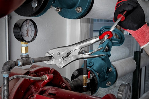 The 10" TORQUE LOCK™ MAXBITE™ Curved Locking Pliers are engineered for superior gripping strength, faster setup, and enhanced user control. Designed with MAXBITE™ teeth, these pliers deliver maximum contact for increased torque and a more secure hold on round, flat, and irregular surfaces. The patented TORQUE LOCK™ adjustment system allows users to apply additional force with a screwdriver through the locking screw, ensuring a tighter grip and quicker release.