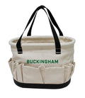 A canvas bucket made with heavy duty canvas with a durable molded bottom with drain holes.