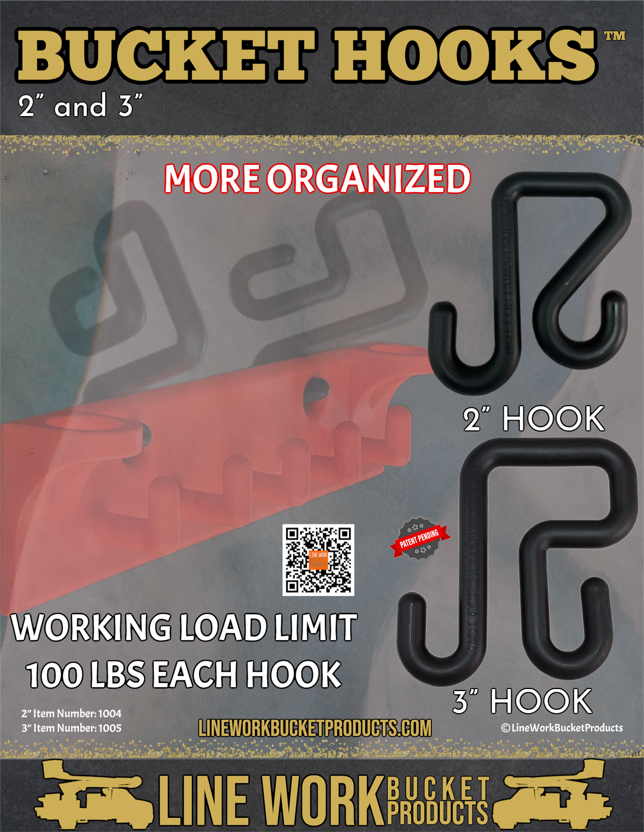 Place your aerial tools on these reliable, extreme weather hooks. Provides easy access and organization to most aerial fiberglass buckets.