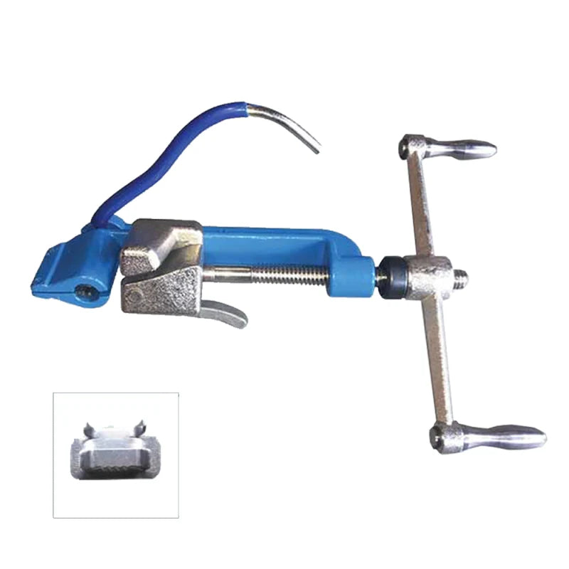 Featuring a built-in cutter with a PVC-coated handle for comfort and a sliding block assembly with spring-loaded lever. Operates on band widths 1/4” to 3/4” and thicknesses up to 0.030”.
