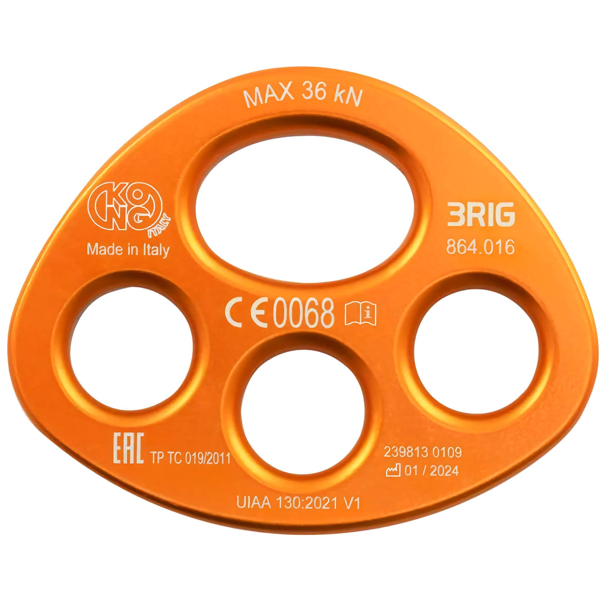 Rigging plater with 3 holes, 20mm diameter, designed to organize a tidy workplace and to create an easy system of multiple anchor points. The upper hole allows to fit two carabiners at the same time. Made of light aluminum alloy, very light, compact and durable. New 10 mm thick version with beveled holes that allow textile items (rope, lanyards, straps) to be directly inserted without the need for connectors. Suitable for simultaneous use by 3 users. High quality product, made in Italy!