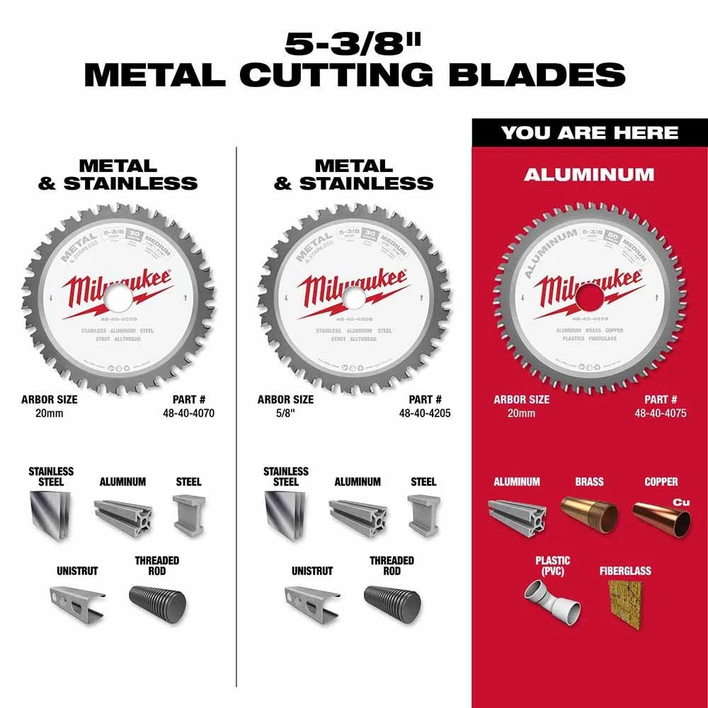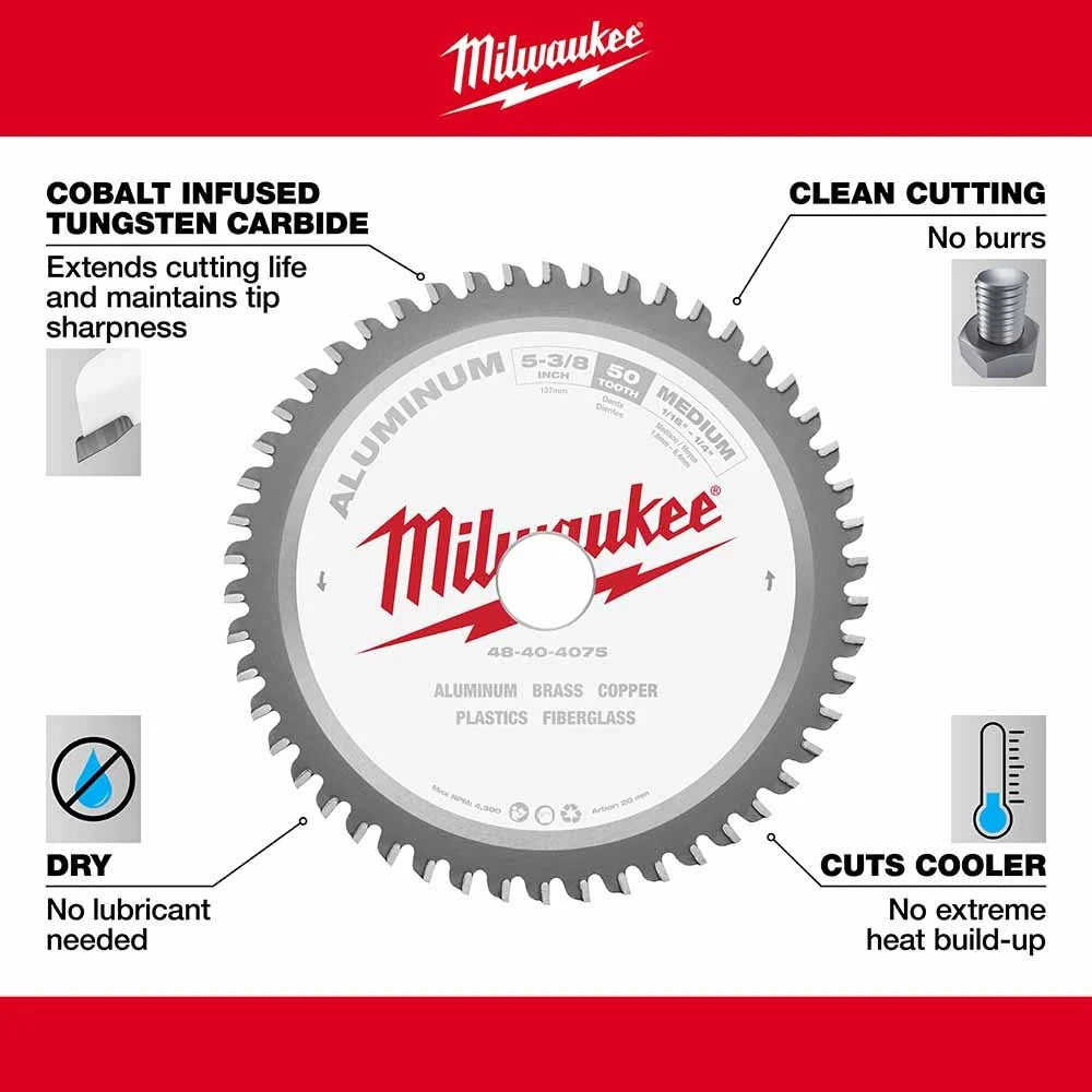 The Milwaukee 48‑40‑4075 5‑3/8″ Aluminum Cutting Circular Saw Blade is engineered for high-performance, dry cutting of non‑ferrous metals like aluminum. Its body is made from hand-tensioned, hardened alloy steel to maximize durability and resist warping. The blade uses cobalt-infused tungsten‑carbide teeth with an Alternate Top Bevel (ATB) grind, which shears through metal cleanly to leave burr-free, cool-to-touch cuts.