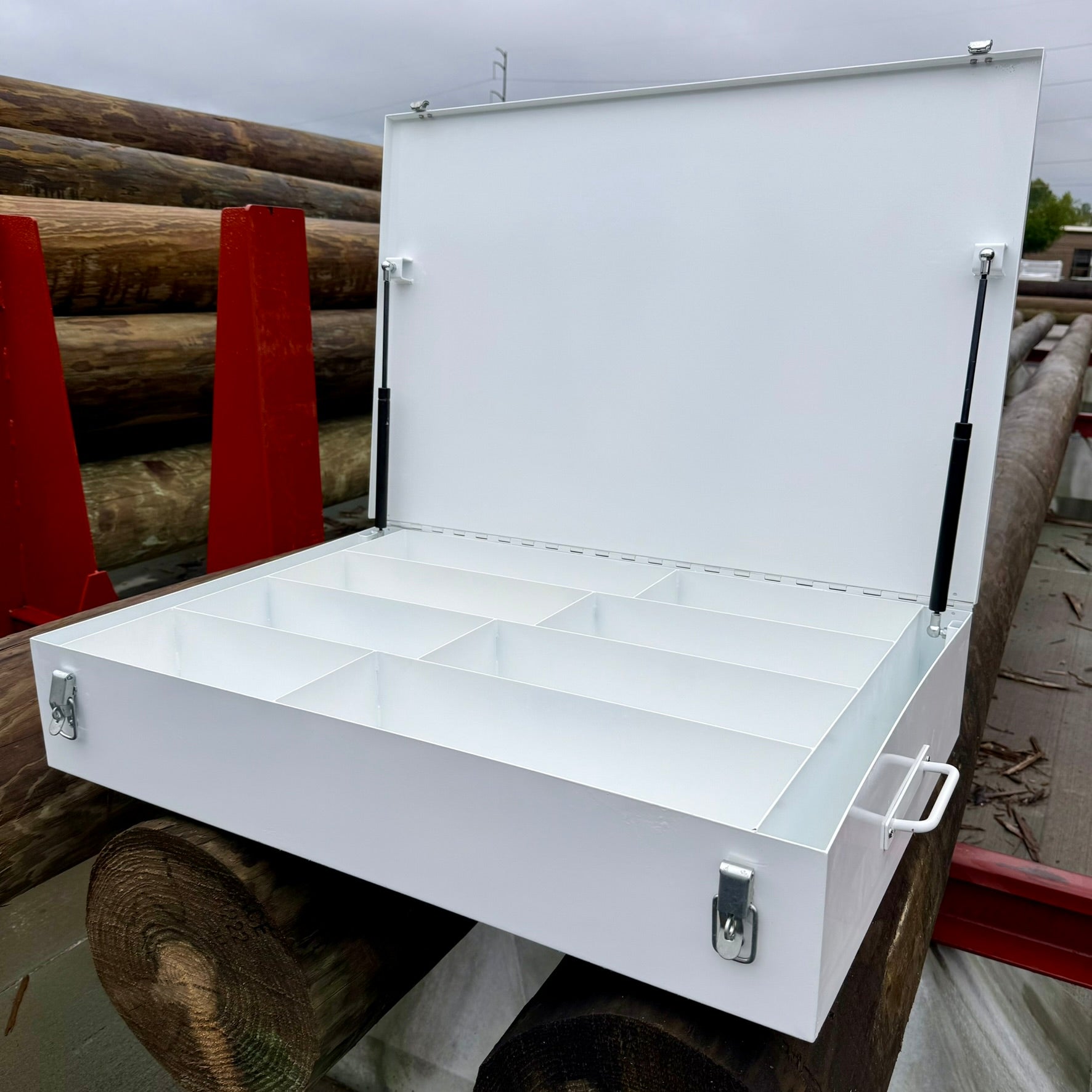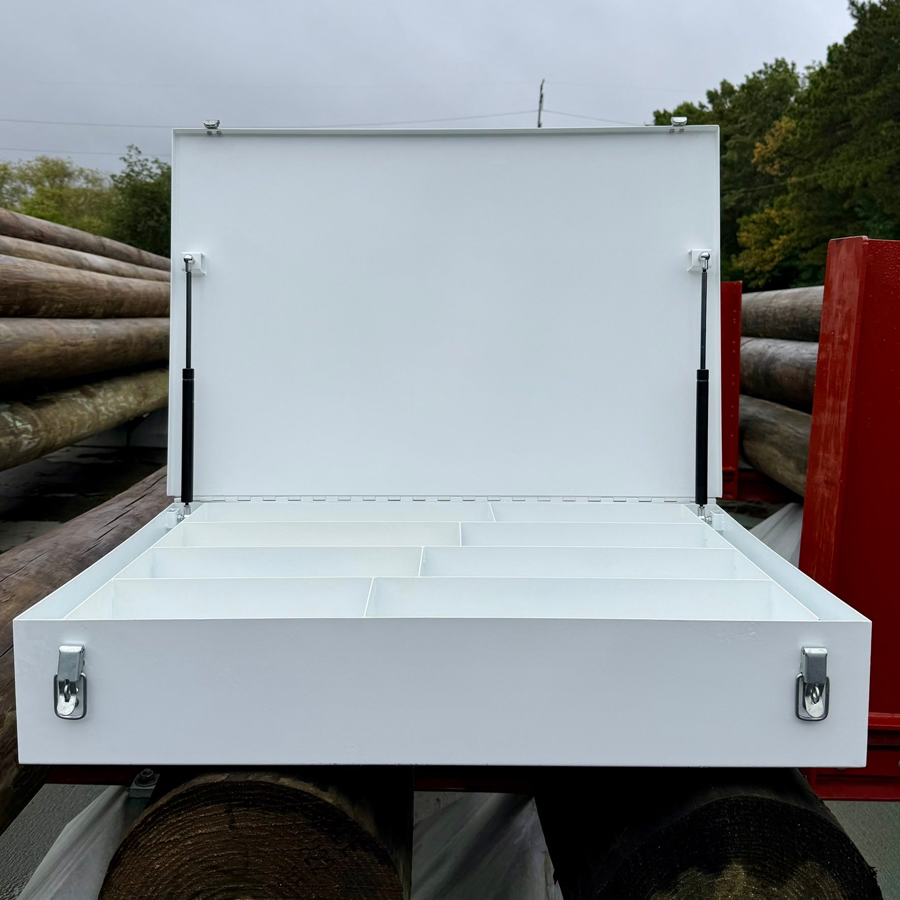 Stop wasting time sorting hardware. The Bolt Bin is the ultimate, no-nonsense storage solution engineered to keep your most-used lineman bolts organized and instantly accessible. Designed to mount securely to the back of a standard bucket truck, this bin saves valuable deck and belly space.Key Features