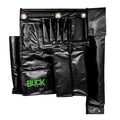 - Three large 3/4″ grommets reinforced with PVC rods that suspend the apron from the bucket using Buckingham PVC or polymer hooks.