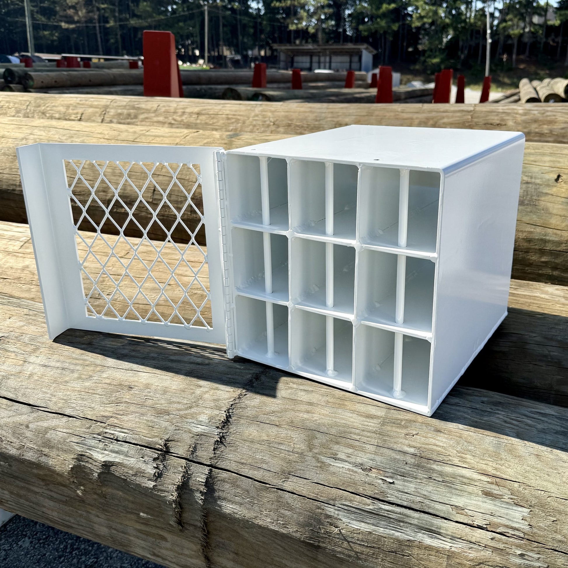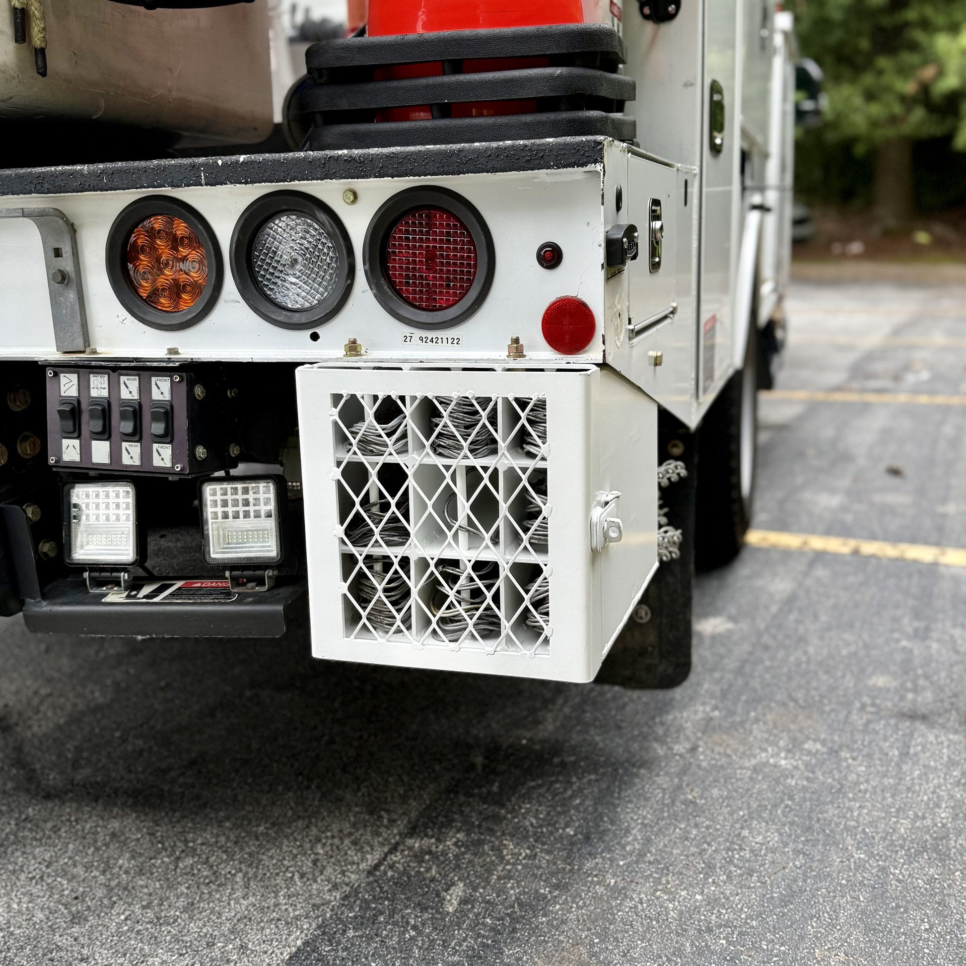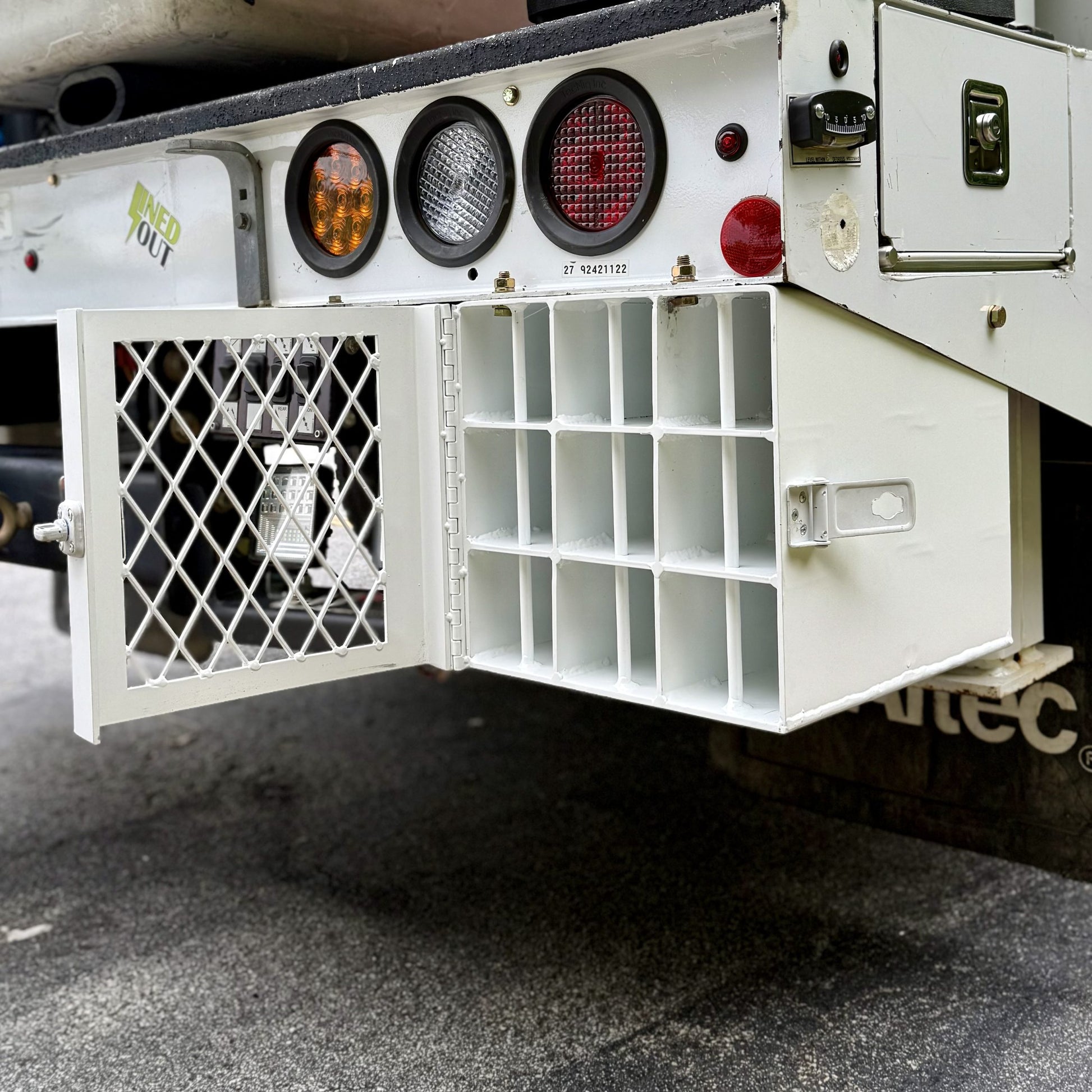 Stop the mess and secure your inventory with the Preform Holder, the ultimate storage solution engineered for linemen and utility professionals. This holder is built to keep your service performs organized, protected, and completely out of your work area. Maximum Organization and Capacity: Designed with 9 dedicated compartments, this unit accommodates a full range of service preforms, easily handling everything from #4 up to 4/0 wire sizes. Say goodbye to rummaging through bins—locate the exact preform you need instantly. Unmatched Security and Durability:- Locking Hinged Door: Provides critical protection against theft, harsh weather, and road grime, ensuring your gear remains clean, dry, and secure, no matter the conditions.