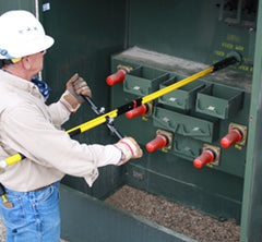 Have you ever struggled with a stubborn tap on a KV Pad Mount Transformer? If so, the Robotool "Grip-Stik™ Tap Twister" is the answer. Easy to secure on your Hot Stick or Switch Stick, the "Grip-Stik™ Tap Twister" will save you time, money ("One man - One Tool") and help avoid short and long-term injuries.