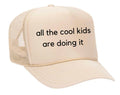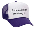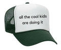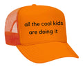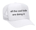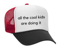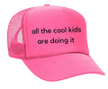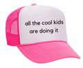 Looking for a hat that's both stylish and humorous? Look no further than our "All the Cool Kids Are Doing It" trucker hat! With a playful slogan that'll have people laughing and turning heads, this hat is perfect for adding a bit of personality to any outfit. Join the cool kids club and grab one today!