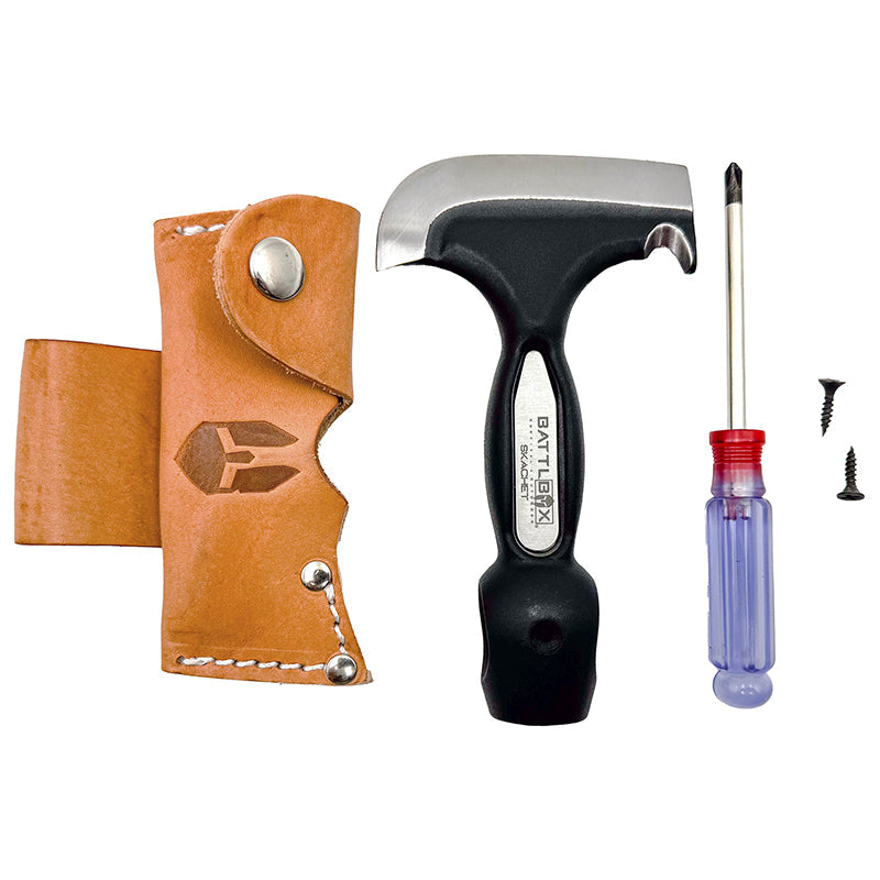 I have made a few Vidjas showing this tool and it has always been well received. It’s been out of production for many years and has only been available at antique shops, estate sales, and a few found here and there on sites like eBay. But luckily for all of us, we are bringing back a piece of survival and hunting history! The Skachet has been used for many years as an all-purpose tool that includes a skinner, hatchet, hammer, ripper... or gut hook. You can use this tool from the hand as an improvised knife or ulu (It’s great for the skinning game) or fashion a handle from the surrounding woods and use it as a hatchet or hammer. It’s a tough well-constructed tool that will last generations... not to mention it is a whole lot of fun to use. Made from 65MN Carbon Steel and comes with a genuine leather sheath.