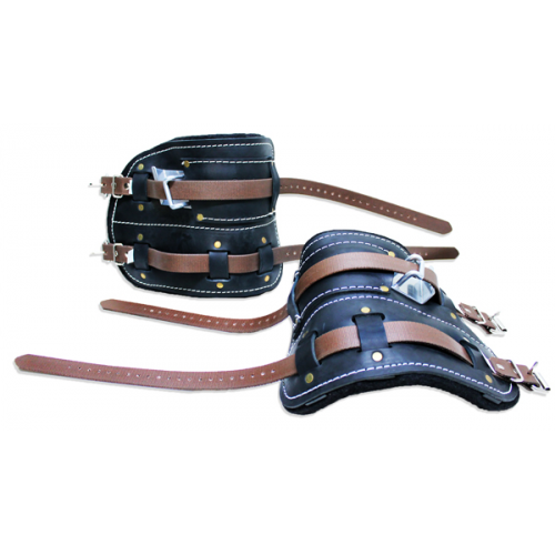 - An angled metal insert prevents the climber shank from shifting on the calf