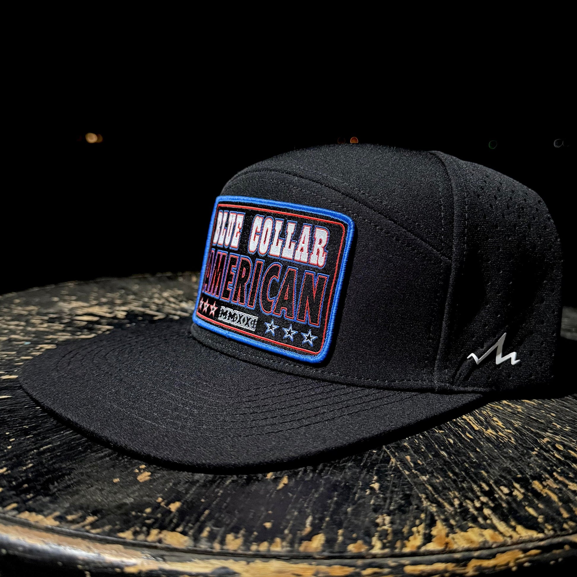 This black snapback is built for those who take pride in where they come from and what they stand for. The front patch features “Blue Collar American” in strong red, white, and blue lettering with star details and a Roman numeral touch for a timeless look. Perforated side panels provide ventilation, while the structured crown and flat bill give it a clean, dependable fit. Whether you’re on the job or off the clock, this hat represents hard work, patriotism, and the American worker’s spirit.