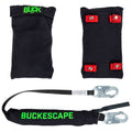 The BuckEscape™ rescue lanyard is a one-time use energy absorbing lanyard with a shock pack that features an aluminum snap hook on each end for use with a full-body harness with a dorsal attachment.