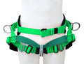 The Classic Saddle Series provide one accessory ring for first aid and two accessory loops. Designed with forged medium D-rings, interlocking leg strap buckles and suspender connection loops. 7″ Tuff Duck covered back support provides saddle rigidity. Multiple friction buckles for easy adjustments and positive locking provides user an ideal center of gravity. Two rugged and versatile handsaw snaps and heavy duty elastic extensions for leg pads or batten seat. A Classic Traverse ArborMaster® saddle with two sliding suspension dee rings for enhanced torso movement and a batten seat design. Comes with a friction buckle waist closure and is available with a tongue buckle waist, add suffix ‘T’.