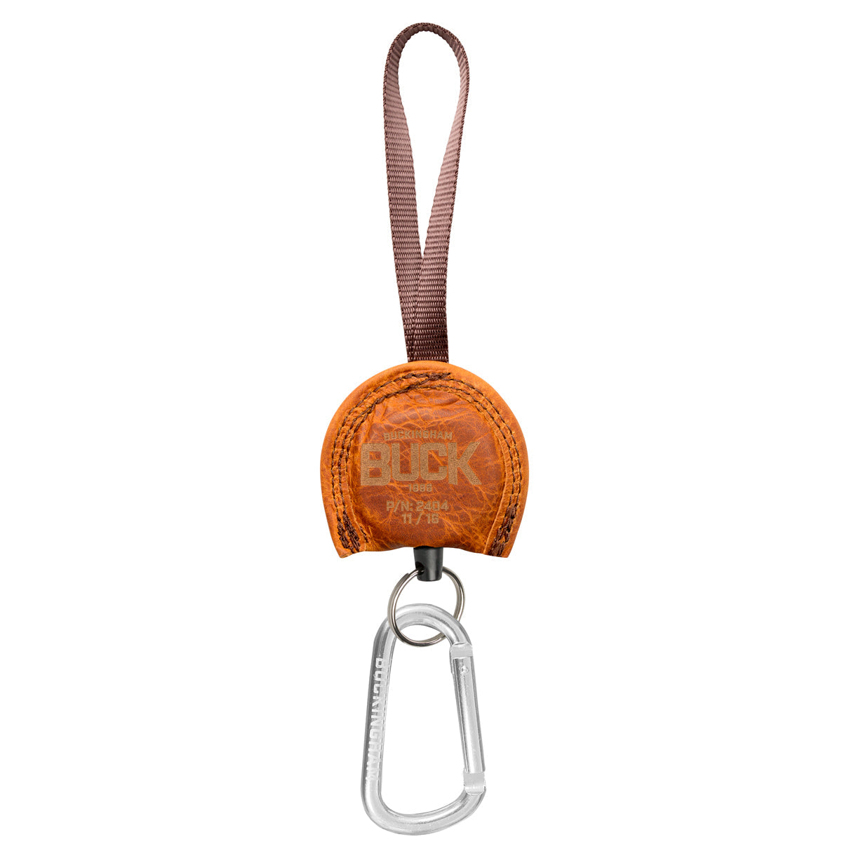 The BuckTender is a lightweight, compact retractable designed to keep excess slack from the tail of the BuckAdjust™ secondary lanyard or wood pole fall restriction device out of the way while climbing and working. It also allows the user to make length adjustments without having to remove the tail from a hand line hook or ditty bag. The BuckTender is available with a single leg or dual leg (if user has the tails of both the secondary lanyard and wood pole fall restriction device on one side). The BuckTender will break away when approximately 50 pounds of force is applied.