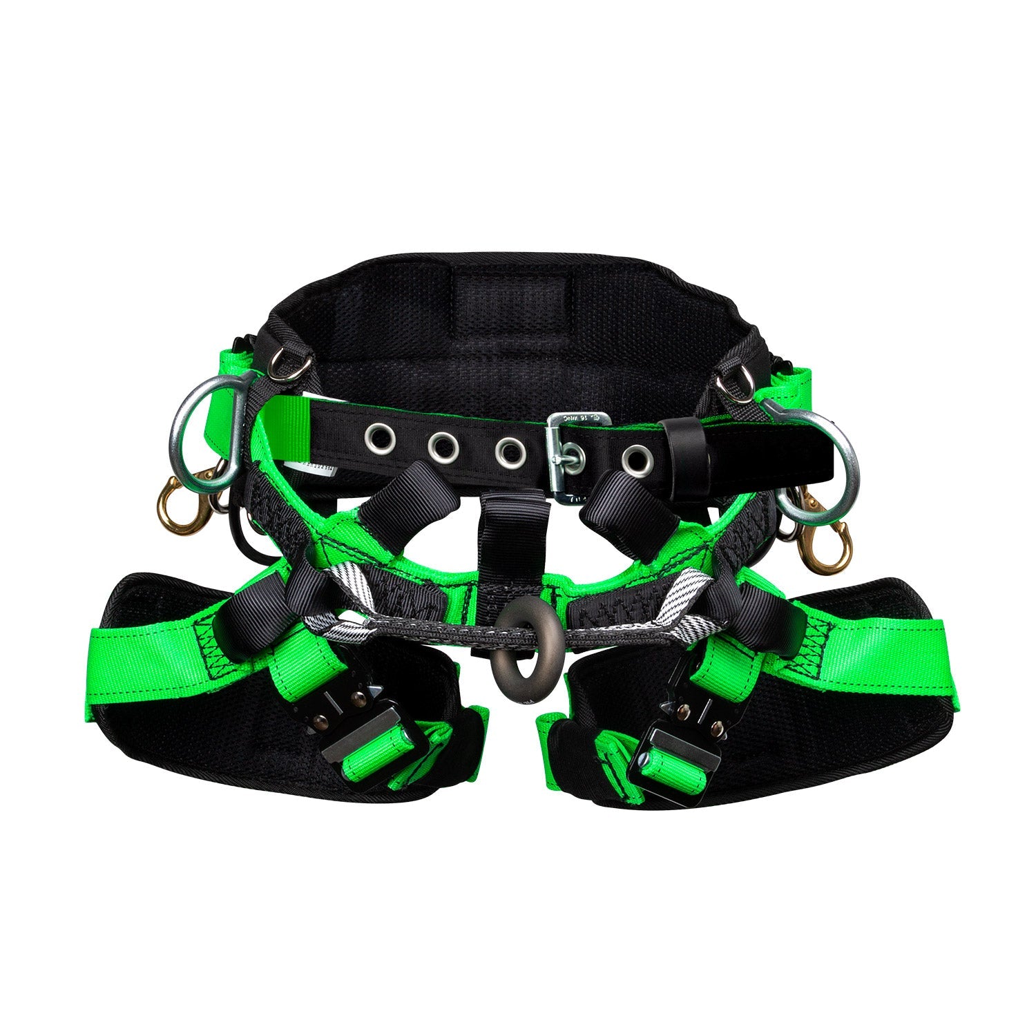 The Master 5.0 is the latest in a product line developed hand-in-hand between Buckingham Manufacturing and the team at ArborMaster. This top-of-the-line saddle is lightweight and padded to ensure maximum comfort. There are nine stationary-rated attachment points along with two medium-sized dee rigs for anything from chainsaw lanyards to blood stopping kits. The floating bridge provides for optimum maneuverability in SRT systems.