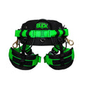 - Quick connect buckle leg straps allow the user to step into the saddle before securing leg straps