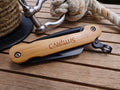 The Camillus 7.5″ Folding Knife features an integrated Marlin Spike, Bamboo Handle and AUS-8 Steel components. The AUS-8 component steel offers exceptional balance between toughness, edge sharpness, and corrosion resistance. Additionally, the steel is bonded with Carbonitride Titanium to provide an added layer of unparalleled rust and corrosion resistance. The same treatment also makes the components up to 10x harder than untreated steel, affording exceptional strength and edge retention over time. Featuring a robust dual locking system as well, the Marlin Spike can be locked into place when not in use. When in use, it can help loosen knots with ease. In addition it can be used for unlaying rope and completely untying knots. Backed by our Lifetime Warranty as well, this bastion of versatility would make a fine addition to any outdoorsman’s gear kit or fisherman’s tackle box.