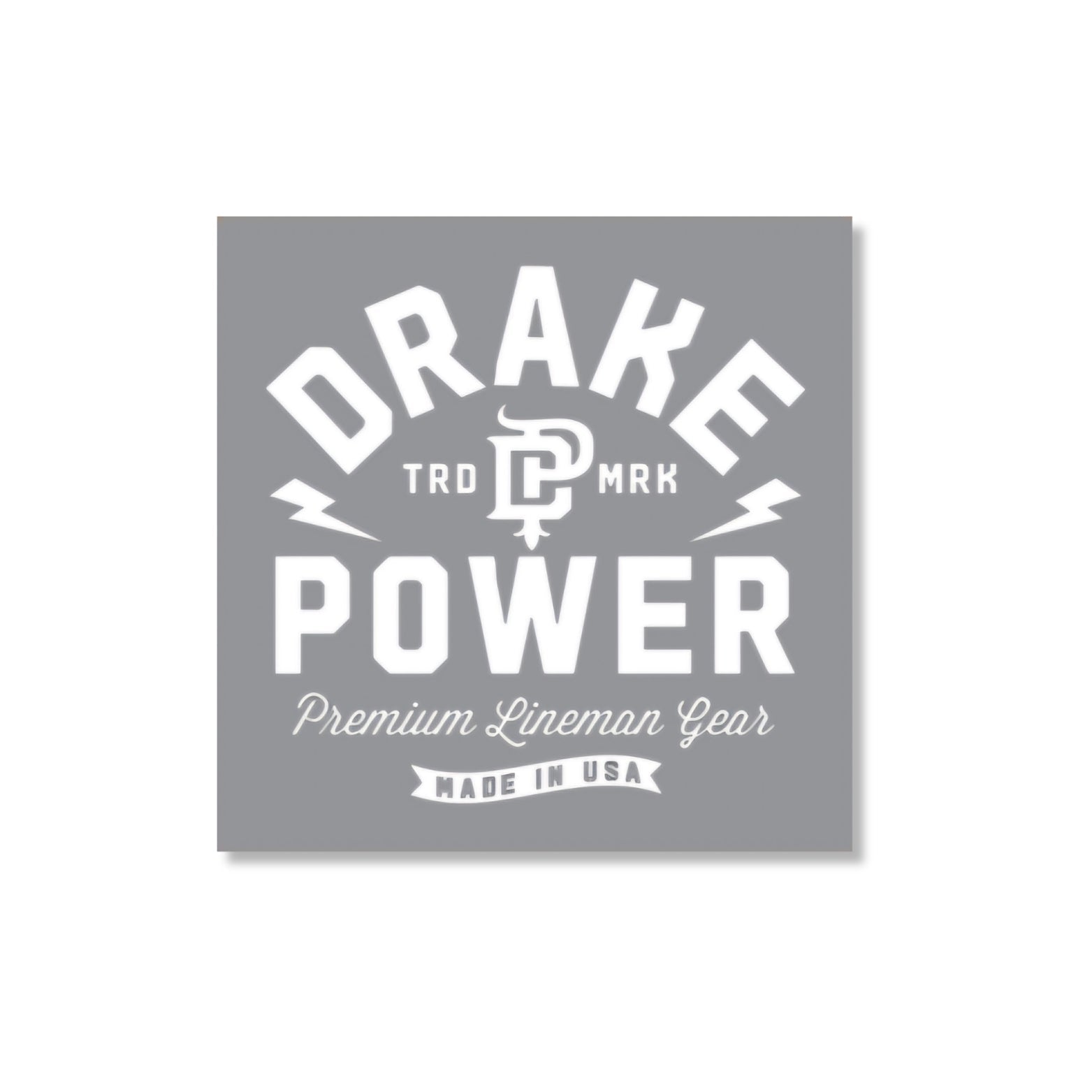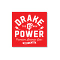 - 3 stickers featuring the Drake Power logo in a 2” x 2” square design