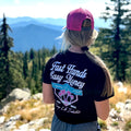 Palm trees, neon lights, and zero hesitation. This crop top brings Miami Vice energy to a blue-collar grind. The Fast Hands, Easy Money tee is all gas, no brakes. Built for the women who work hard, move fast, and look damn good doing it. Soft feel, relaxed cut, and a retro vibe that doesn’t miss.