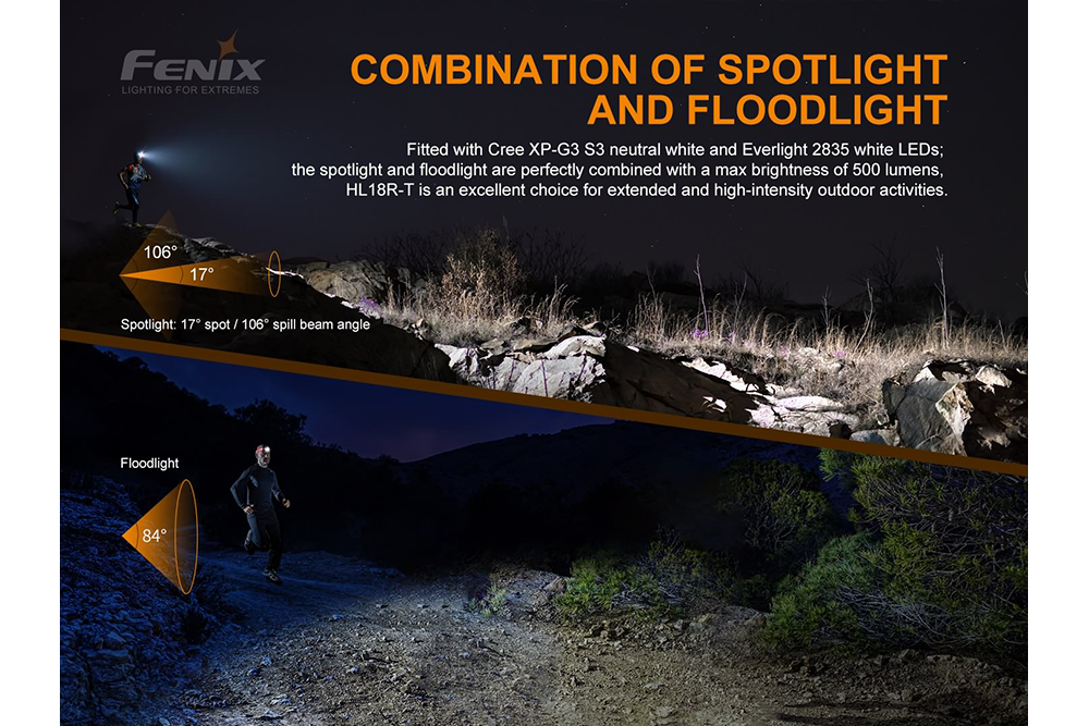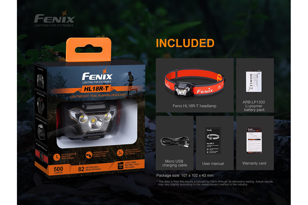 The HL18R-T Headlamp by Fenix is engineered for trail running, boasting a lightweight design and dual power sources. The reflective headband ensures the headlamp can be seen by other runners, and the included Micro USB charging cord allows for quick charging. This reliable headlamp has a max output of 500 lumens, with a 20-hour runtime mode. Get the most out of your runs with the HL18R-T Headlamp.