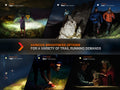 The HM65R-DT is a top-end headlamp designed for endurance trail running. It boasts up to 1500 lumens, a throw distance of 560 ft (170 meters), a warm white light LED (3000K) and a lightweight magnesium alloy build. Comes in three colors, plus a SPORT fit system for single-handed adjustment. Perforated headband for ventilation and comfort. Operates in temperatures from -35°C/-95°F to 45°C/113°F.