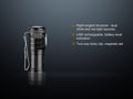 The Fenix LD15R USB rechargeable right angle flashlight is exceedingly useful in any scenario. It offers both white and red beams of light, and operates with the assistance of one 16340 rechargeable lithium ion battery, also compatible with a cold-resistant CR123A battery. Boasting a max output of 500 lumens and beam distance of 278.9 ft (85 m), this Fenix LD15R right-angle flashlight offers four white and three red light output levels, along with Micro USB charging, battery level indication, a two-way body clip, and a magnetic tail. All in all, the LD15R is a great aid for repair work, outdoor activities, and daily use.