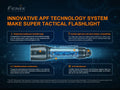 The Fenix TK22 TAC modernizes the classic TK22 with APF Technology and features a rotating tail switch to toggle between duty and tactical modes, providing maximum versatility. Duty Mode allows for 4 brightness levels and strobe, while Tactical Mode limits access to only turbo and strobe. For further security, the switch contains a mechanical lock, enabling you to lock the light at any brightness level, strobe, or off. With 2800 lumens from the Luminus SFT70 LED and a maximum runtime of up to almost 50 hours in Eco Mode, the TK22 TAC provides reliable performance in even demanding situations. This flashlight is also IP68-rated waterproof and resilient against drops up to 1.5 meters.