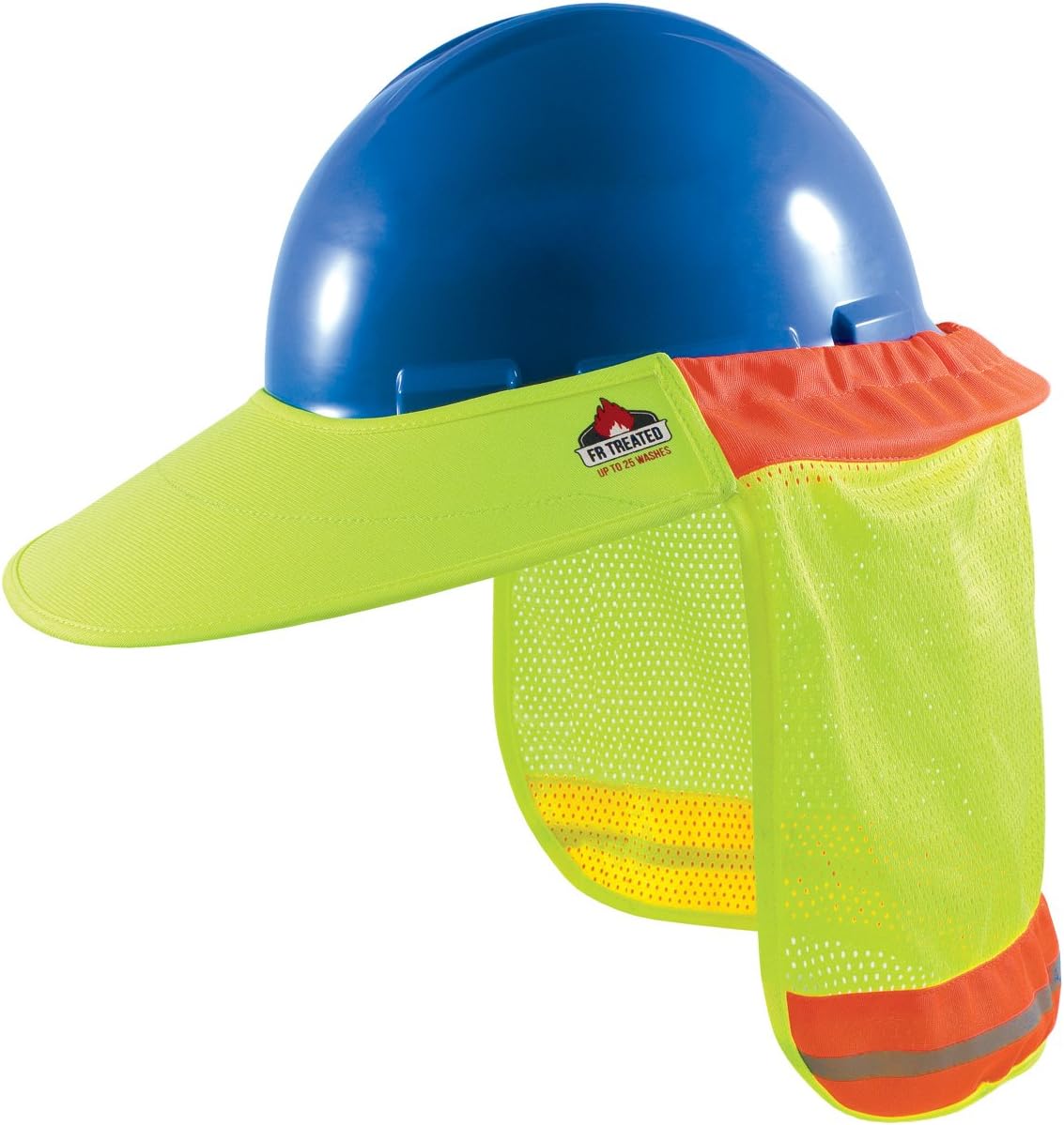 - Fr (flame resistant) treated hi Vis hard Hat Neck sun shield shade with visor to block the sun from workers eyes