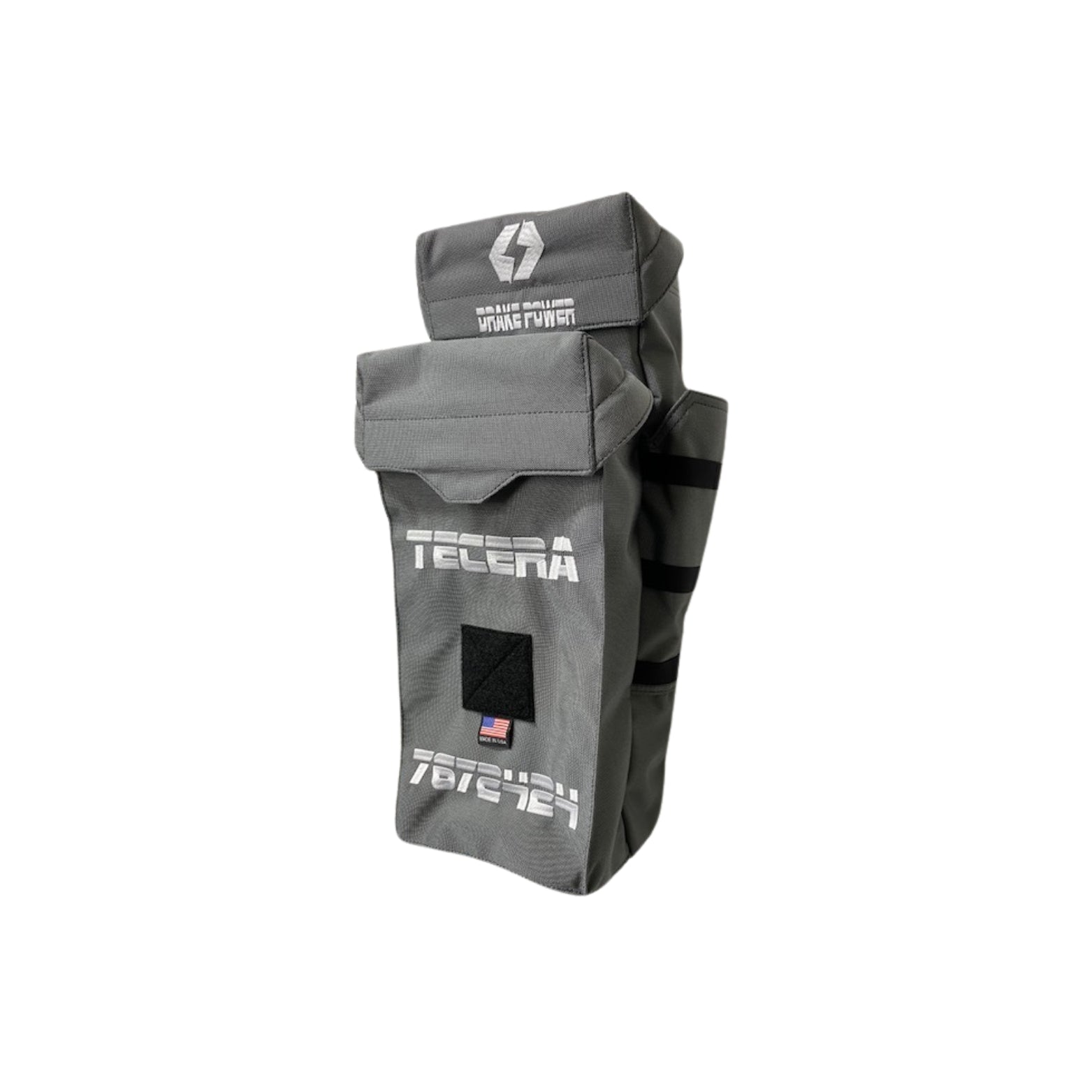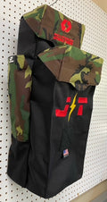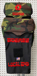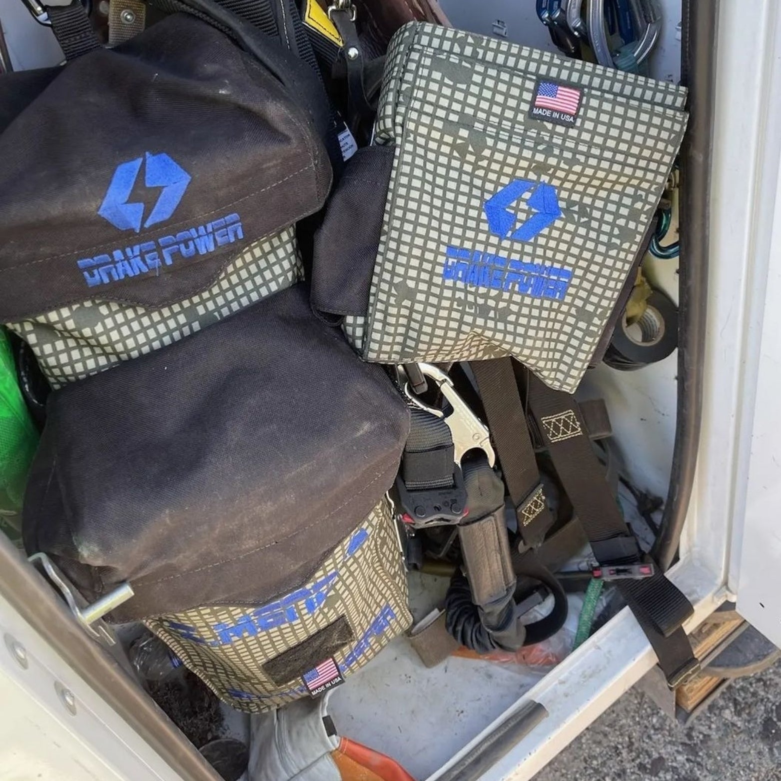 The bag features the main compartment for your sleeves and the front pocket for your rubber gloves. The 2 side pockets act as an easy location to store your work gloves when you transition to your rubbers or a multi meter. The bag is made from cordura. It features inward seam that makes the bag more streamline and less susceptible to snagging. For quick and easy storing hanging on your bucket each and every bag comes with a rated carabiner. With every one of our bags you get to customize your bag to your specific style. You get choice of color ways, choice of embroidery, and choice of what color your embroidery will be.