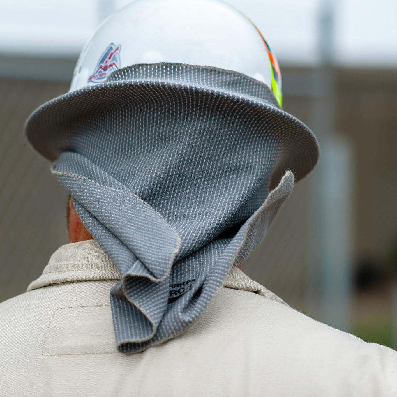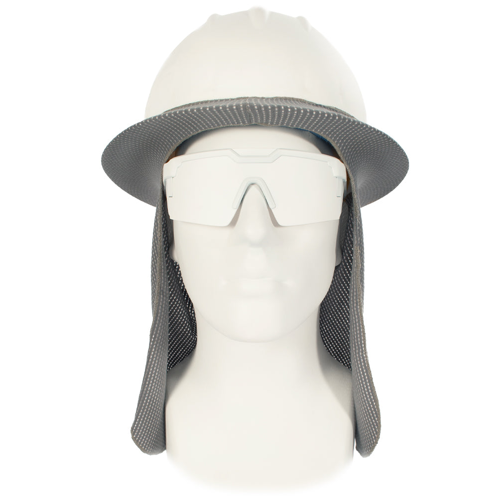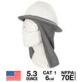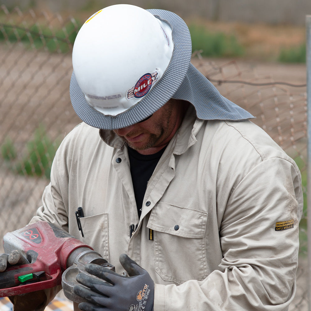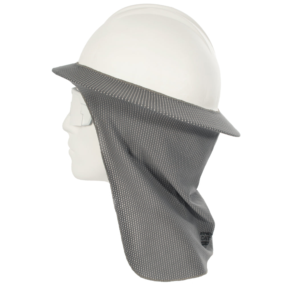 Feel the breeze. The GOAT Flex Sol Shade let's you do just that. Made from the greatest FR micro-mesh knit which allows air to flow without restriction. The ultra-lightweight knit is made from a blend of cotton, cellulose fibers, poly & spandex so it feels soft and cool to the touch. Constructed to fit wide format hard-hats, you can easily pull and stretch the Sol Shade onto your brim without too much fuss. Invisible silicon backing prevents slipping and sliding. Will not block your peripheral vision, but will protect your ears & neck from sun exposure.