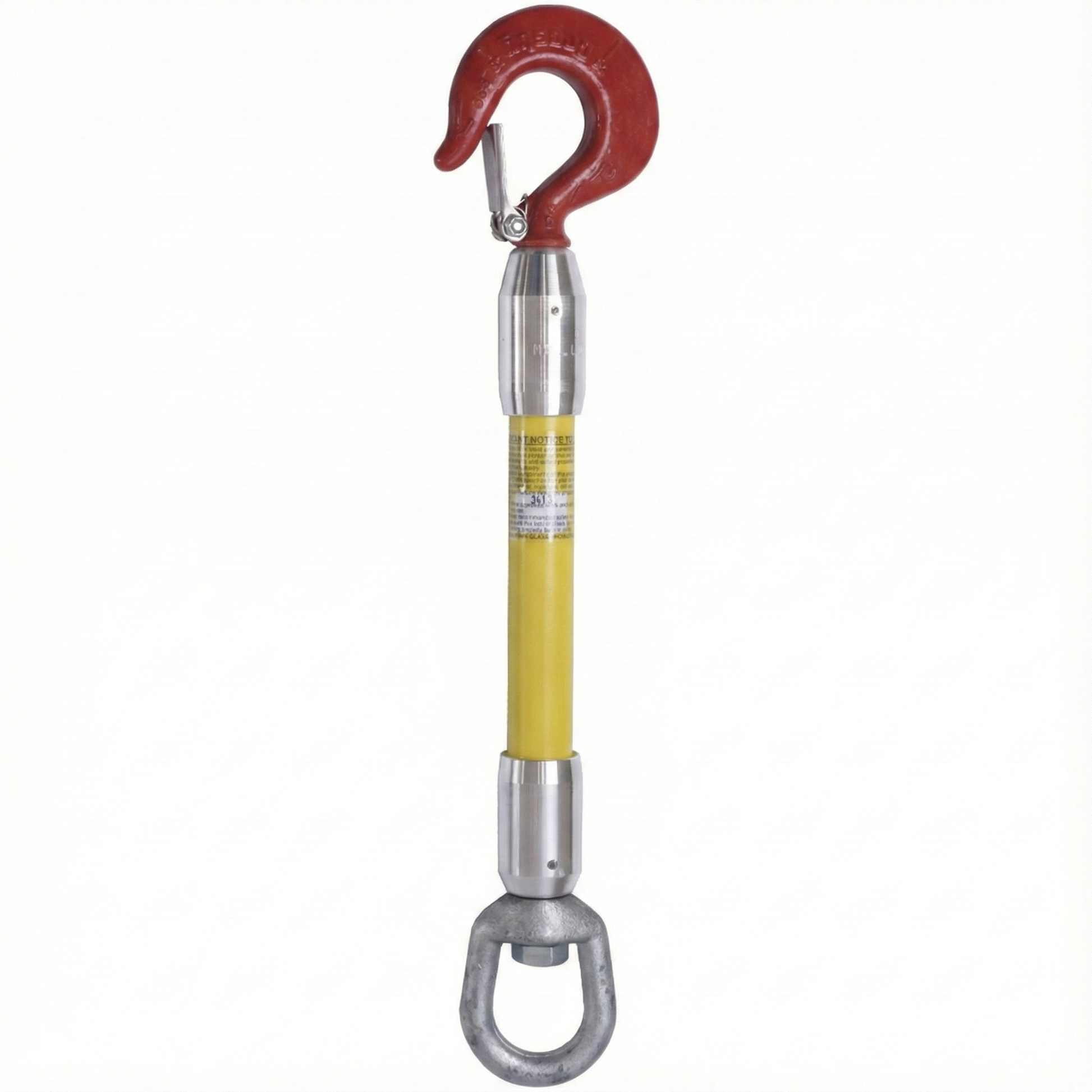 The Hastings 3413 Isolating Link Stick is a compact, 6‑inch fiberglass insulating link designed to safely separate strap hoists, come‑alongs, and rope blocks from energized conductors. Built with a swivel eye and a hot‑stick‑operated safety latch, it provides a secure, controlled connection point while maintaining electrical isolation between equipment at different potentials. Its rugged construction and dependable latch mechanism make it a trusted tool for energized distribution work, rigging setups, and storm response operations.