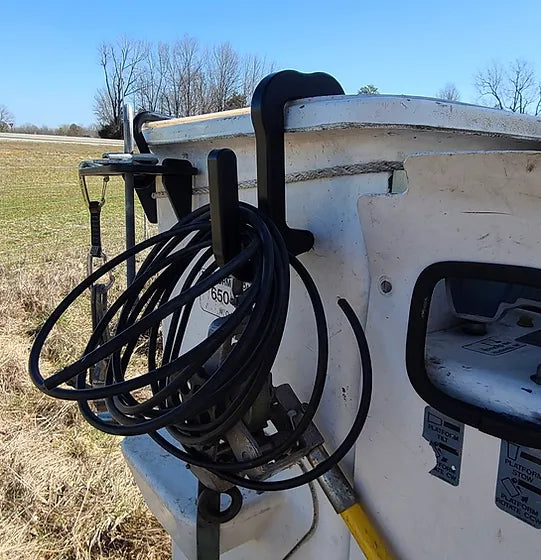 It was designed with all you transmission hands in mind to hold those heavy chain hoists, giant wire grips, rolled up 4/0 grounds and endless other tools or equipment. We made sure to make these hooks perfectly holster the beloved Milwaukee money gun impacts as well.