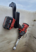 Now you can hang your impact between tasks with the drillbit still installed and it points safely downward. No more getting stabbed in the side and ripping shirts on drillbits. We tested this hook at over 1000 pounds for 24 hours with zero issues so we feel very safe with a labled weight rating of 250lbs. Each hook is milled from 1" thick material just like the outrigger jack pads are made out of. Each hook comes with a career warranty and you can count on it lasting until then. Proudly made in our own factory located in Northern Arkansas. Patent pending.