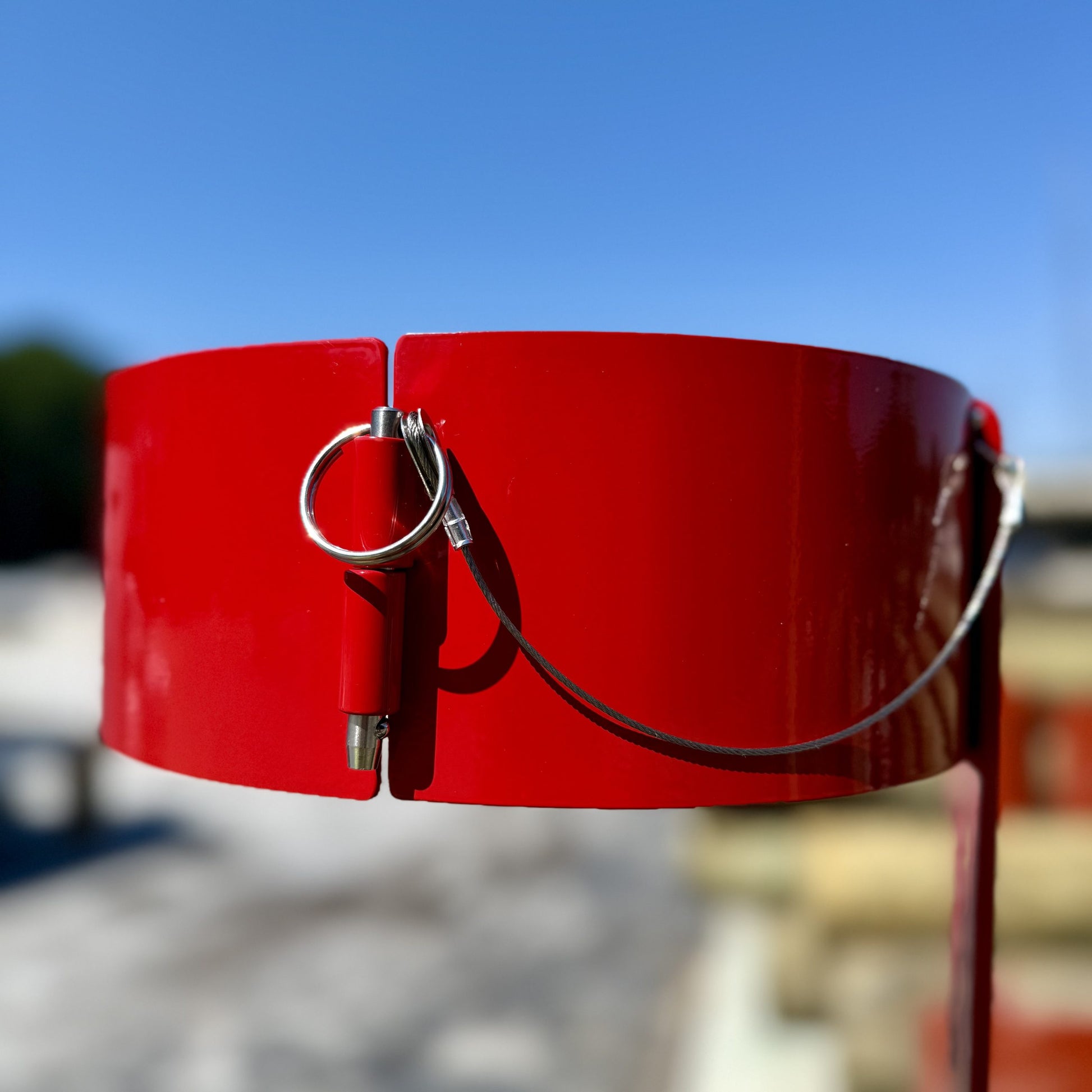Stop sacrificing precious deck or belly space. The Blanket Canister Holder is engineered for utility trucks, mounting directly to the back of your truck bins to provide a compact and reliable storage solution for your rubber insulating blanket tubes. Engineered for Universal Fit: Measuring 30" tall by 10½" wide, this holder is designed to securely cradle all major brand canisters, including standard sizes from Estex, Salisbury, GME, and Tallman. This compatibility ensures your crew's gear is protected, regardless of manufacturer. Two heavy-duty 4-inch steel bands lock tubes firmly in place, eliminating rolling and shifting during transport. Safety and Speed Built-In: The hinged access door makes loading and unloading fast and easy, and it now features a safety lanyard for added security on the job. With countersunk mounting holes to protect your gear and rugged all-steel construction, this holder is tough enough for any job site.Key Features