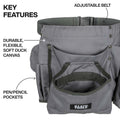 - Heavyweight canvas material is double layered and seams are stitched and riveted to stand up to the toughest jobs