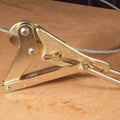 - Manufactured from drop-forged, heat-treated steel for excellent durability with a spring that closes grip on cable helping to maintain initial position