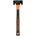The Lineman's Double-Face Hammer is crafted for pole-line work. It features identical faces, each with a 1-3/4-inch (4.5 cm) round-crown driving surface and beveled edges. This tool is dual-purpose, incorporating a built-in J-hook remover. An ergonomic handle is designed for added comfort, and an overstrike protection feature enhances the hammer's durability and longevity. It is rugged and well-balanced, providing the necessary weight to drive lag bolts. The forged, tempered-steel head measures just 3-3/4 inches (9.5 cm) in length, making it ideal for use in confined spaces.
