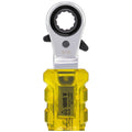 - This box wrench complies with the ASTM 1505-10 standard, offering a 1000V insulation rating. Its transparent insulating handle ensures the metal ends remain isolated. Featuring 1/2", 9/16", 5/8", and 3/4" 12-point sockets in a single tool, it provides versatility. The wrench includes reverse ratcheting switches on both ends, with covered gear mechanisms to guard against dirt and debris. A 48-tooth gear reduces swing arc, while a larger pawl facilitates easier direction changes even when wearing class 2 gloves. Textured handle grooves enhance grip, and the chrome-plated finish protects against corrosion.