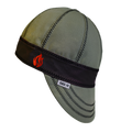 - Fire-Resistant fabric and thread, 8 panel, deep crown, super soft brim, single sided welders cap made with FR flame resistant cotton fabric.