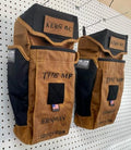The bag features the main compartment for your sleeves and the front pocket for your rubber gloves. The 2 side pockets act as an easy location to store your work gloves when you transition to your rubbers or a multi meter. The bag is made from cordura and genuine leather. It features inward seam that makes the bag more streamline and less susceptible to snagging. For quick and easy storing hanging on your bucket each and every bag comes with a rated carabiner. With every one of our bags you get to customize your bag to your specific style. You get choice of color ways, choice of embroidery, and choice of what color your embroidery will be.