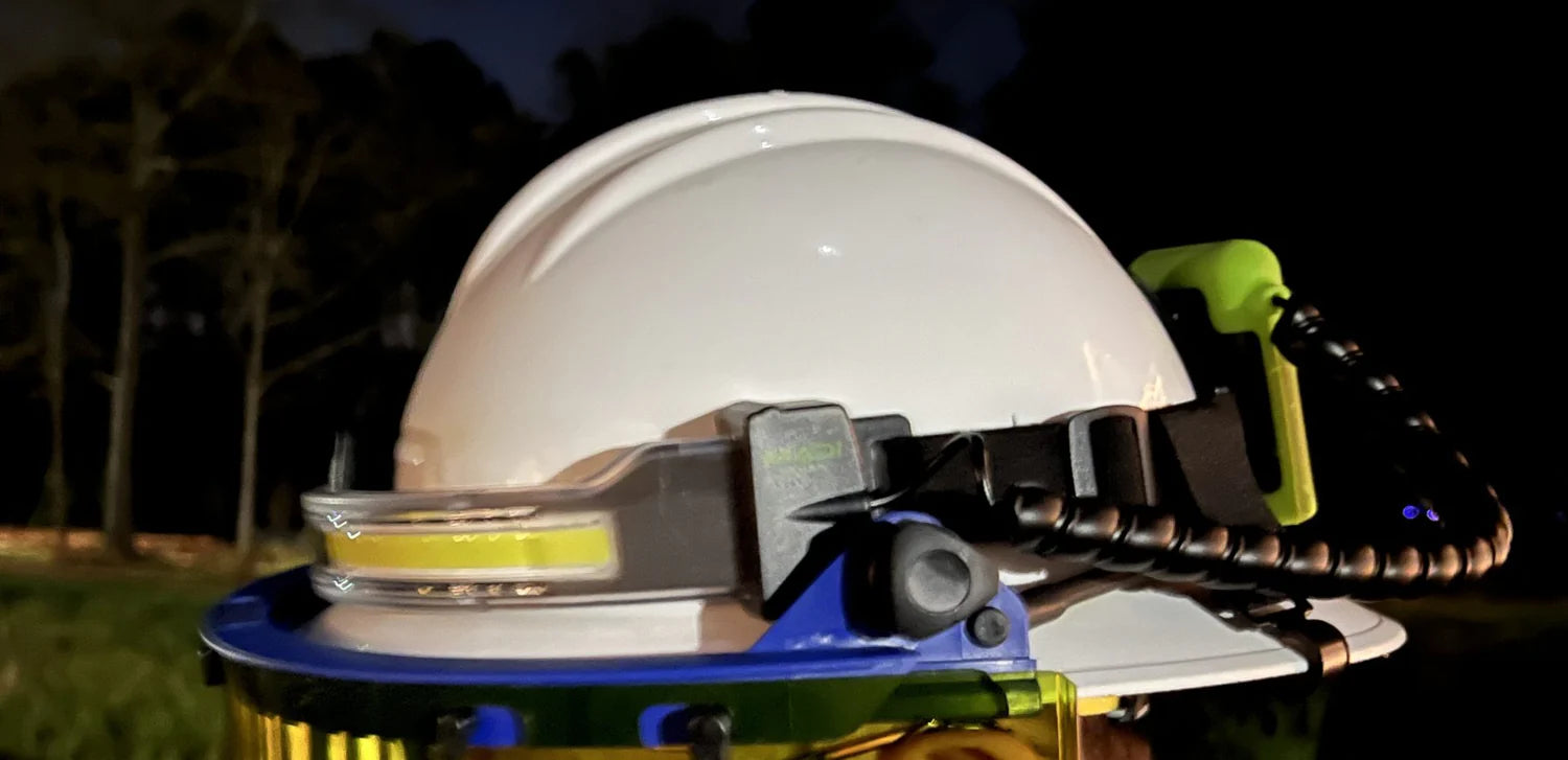 Introducing the LED Headlight designed specifically for linemen, providing a practical and efficient lighting solution for any job. This versatile headlight works seamlessly with all shields, allowing you to flip the shield up or down without the hassle of carrying two helmets or wasting time removing lights. With a full view in front and no backlight blinding others, you can focus on your work without distraction. Featuring four settings—high, low, spot, and off—this headlight delivers a powerful 450 lumens and boasts an impressive 20 hours of runtime. Its waterproof design (IP65) ensures reliability in all weather conditions, while its lightweight construction enhances comfort during long hours of use. The headlight operates on four double AA batteries (not included) and comes equipped with a fire-retardant strap, wire cover, and four clips for added convenience. To top it off, it includes a storage bag for easy transport. The LED Headlight is the ideal choice for linemen looking for a durable, efficient, and user-friendly lighting solution on the job.