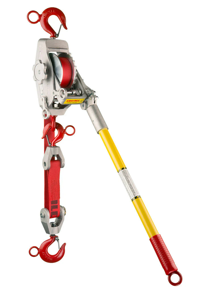 Lugall- 1 1/2 Ton Web Strap Hoist w/ Hot Stick Rings & Hook Latches