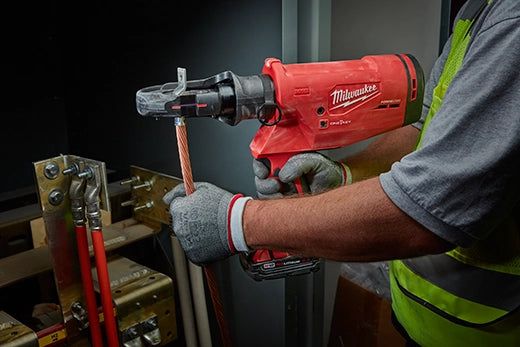 Our M18™ FORCE LOGIC™ 750 MCM Crimper is the easiest way to crimp. It produces cULus classified crimps according to the UL 486A-B classification standards for #8 - 750 MCM Cu and Dual Rated Anderson, Blackburn® Burndy, Ilsco, Panduit, Penn-Union and Thomas & Betts Connectors. Milwaukee® EXACT™ 12T U-Style Dies are individually engineered both for quality crimps and for faster connections on all sizes with die lengths specific to each connector. In addition, every EXACT™ 12T U-Style Die features vivid industry standard colors to indicate wire size and center alignment markings for easiest die selection and die alignment. All dies also eliminate cross referencing by imprinting the wire size onto completed connectors and are the only dies that are 100% serialized and measured for greatest accuracy and easiest inspection. Engineered to reduce weight and improve balance, the M18 FORCE LOGIC™ 750 MCM Crimper is the lightest and only fully balanced 12T crimper, with a 350 degree rotating head and red alignment marks making it the lightest, most balanced and easiest crimper to align. Predictive Force Monitoring (PFM™) constantly measures force output to deliver consistent speed that won’t bog down on larger connectors while delivering accurate pressure, every time. The only tool that provides instant pressure verification with a green indicator. The hydraulic crimper has pre-crimp battery check that automatically ensures enough battery charge to complete each crimp. The only tool that once a crimp is engaged, has auto-complete to ensure full pressure is reached. Our crimpers feature a fully enclosed high speed hydraulic pump, POWERSTATE™ Brushless Motor, REDLINK™ Electronics and REDLITHIUM™ batteries delivering Ultimate Reliability in tough conditions. Featuring MILWAUKEE® ONE-KEY™ Technology, our crimpers enable you to store real-time crimp data, generate professional reports, view historical tool performance data and sync it all wirelessly to the cloud for easy access. Like all ONE KEY™ tools our crimpers feature tool tracking, allowing you to pinpoint missing tools faster and manage inventory, creating a central place for you to track all tools and equipment across your network of jobs and users. The crimper kit includes EXACT™ #6 AWG – 750 MCM Aluminium U Style Dies, (1) M18™ 5.0 REDLITHIUM™ Battery, (1) M18™ 2.0 REDLITHIUM™ Battery, M18™ and M12™ Multi-Voltage Charger and a carrying case that accommodates 15 sets of U-Style dies.