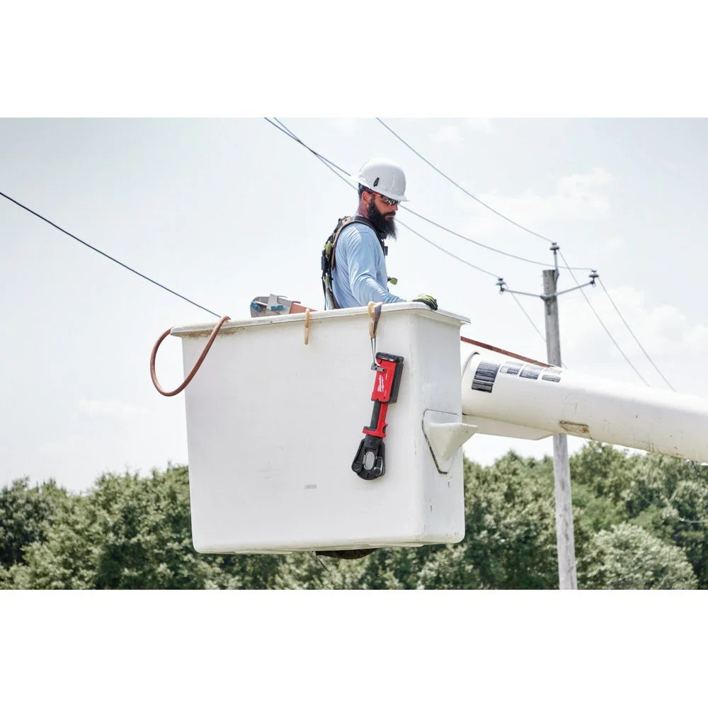 - Compatible with the entire M18 SystemThe MILWAUKEE M18 FORCE LOGIC 12T Latched Linear Crimper is the fastest way to crimp. Equipped with fully enclosed high-speed hydraulics, a POWERSTATE Brushless Motor, REDLINK Electronics, and REDLITHIUM Batteries, the crimp tool provides the fastest crimp speed and unmatched reliability in the toughest conditions. The Milwaukee crimper is designed to allow one-handed use in multiple orientations. An enlarged trigger and electronic release button enable both left and right-handed users to easily activate the tool while wearing Class 3 gloves. The head of the crimper rotates 340° and the quick release and push-to-close style latch pin can be easily opened or secured with just one touch. Predictive Force Monitoring (PFM) constantly measures output force to deliver the fastest crimp speeds across all connector types and sizes and ensures full pressure is reached every time. A pre-crimp battery check confirms that the battery has enough charge to complete a full crimp. Full compatibility with all industry-standard U-dies allows you to use the dies already on your truck. The 12T Latched Linear Crimper creates UL Classified crimps per UL 486A-B on #8 - 750 MCM Copper and Dual Rated Anderson, Blackburn, Burndy, Ilsco, Panduit, Penn-Union, and Thomas & Betts color-coded lugs and splices when using MILWAUKEE EXACT 12T U-Dies. The crimper is integrated with MILWAUKEE ONE KEY Technology, giving the crimper the ability to store real-time crimp data.