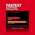 Our MILWAUKEE M18 FUEL HATCHET 8" Pruning Saw delivers increased control & access, has the power to cut hardwoods, and is the fastest cutting pruning saw. This pruning saw is designed to meet the ergonomic, performance, and durability needs of the professional arborist, landscape maintenance professional, and power utility linemen. Weighing less than 5lbs without a battery and featuring a compact design, the cordless pruning saw provides increased control and maneuverability in tight access areas. The POWERSTATE Brushless Motor maintains speed under heavy loads without bogging down to complete demanding cuts faster than 25cc gas. The REDLINK PLUS Intelligence enables full-circle communication between the tool and battery, allowing for unmatched performance, protection, and productivity levels. M18 FUEL technology enables the saw to reach full throttle in under 1 second and a variable speed trigger for ultimate control over the power range. This pruning saw features a lanyard loop, full house chain, easy access chain tensioner, automatic oiler, metal bucking spikes, onboard scrench storage, lanyard loop, and a climbing scabbard. The M18 FUEL HATCHET 8" Pruning Saw is fully compatible with 250+ solutions on the M18 system.