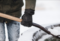 - Winged thumb configuration to decrease material bunching around palm