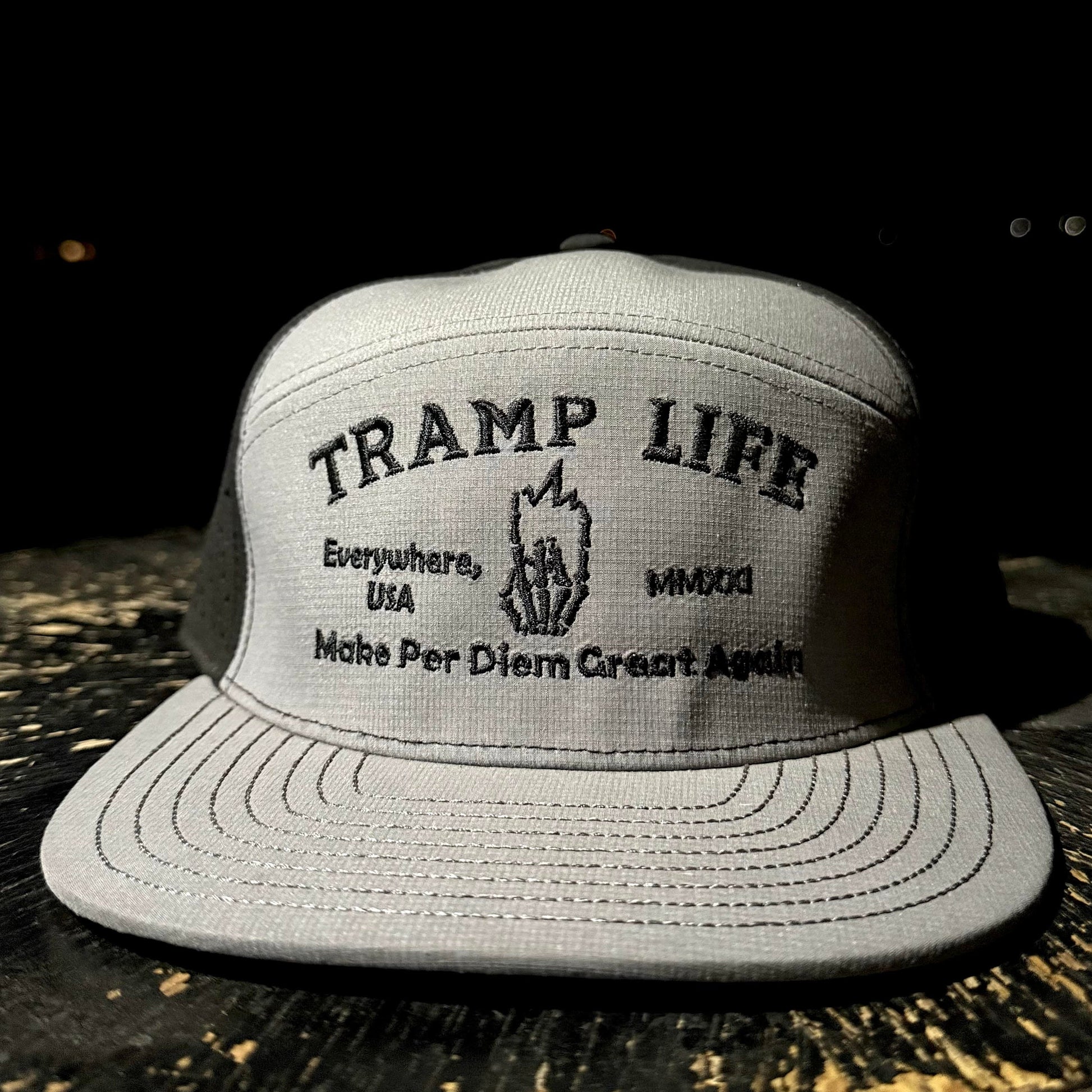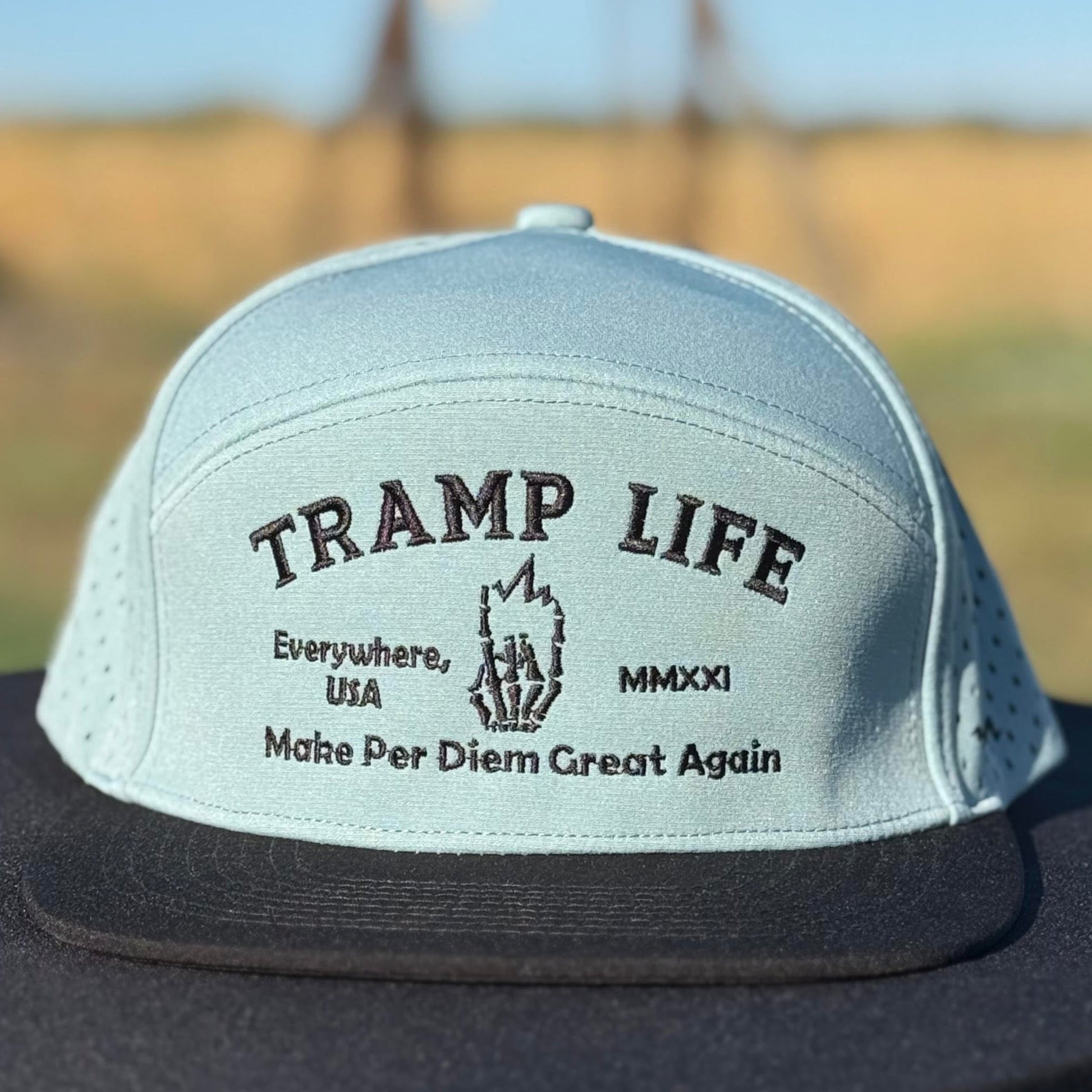 This one’s for the workers who built their lives around long drives, late nights, and paychecks that should hit harder. Tramp Life curved across the front, with the lightning bolt hand between Everywhere, USA and the phrase that speaks for a whole generation of traveling tradesmen: Make Per Diem Great Again