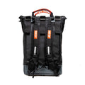 An armoured insert protects the wearer's back from sharp contents, while also keeping the bag upright and supported while not being worn.